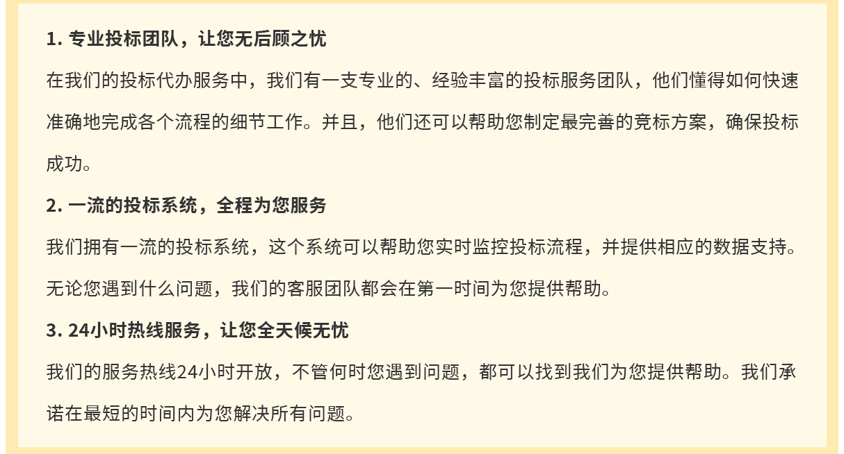 招投標代理服務:我們的專家團隊將為您提供全程招投標代理服務,包括對招標文件的評審、對投標方案的審核、對評標結果的跟蹤和評估等。
